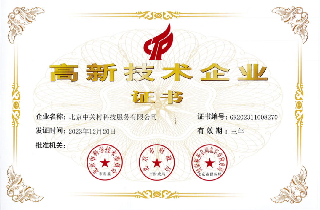 喜报!中关村科服成功通过国家高新技术企业认定